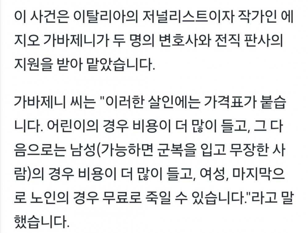 살인 가격은 어린이, 남성, 여성 순서로 비쌌다고 한다.