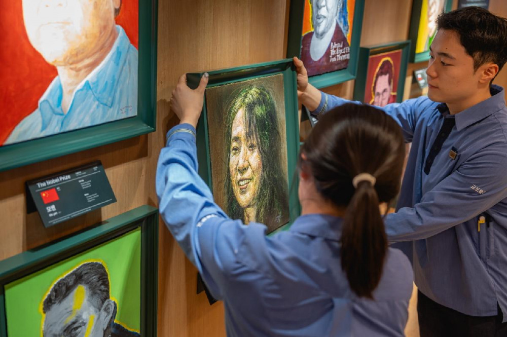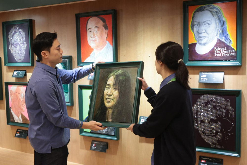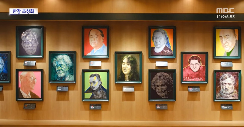 한강 작가 초상화가 걸린 자리는 교보문고와 대산문화재단이 미래의 노벨상 수상자를 위해 10년간 빈 채로 남겨둔 곳이다.