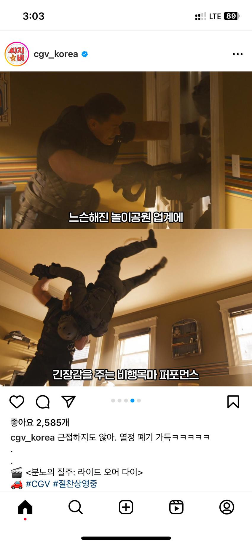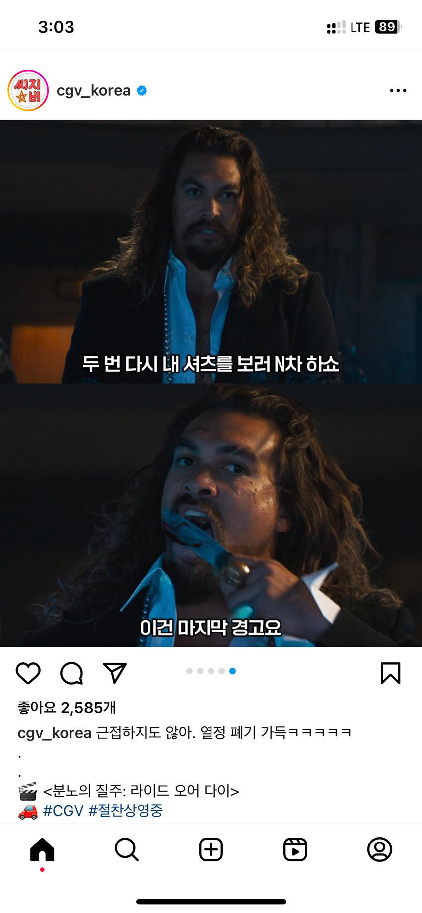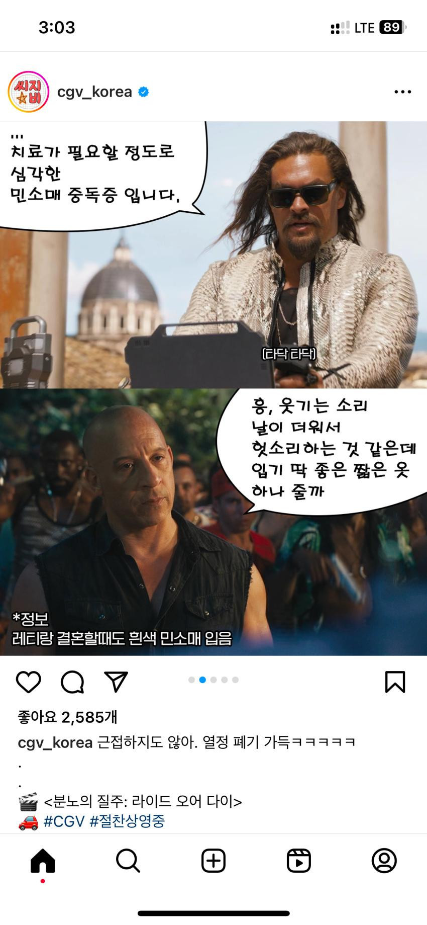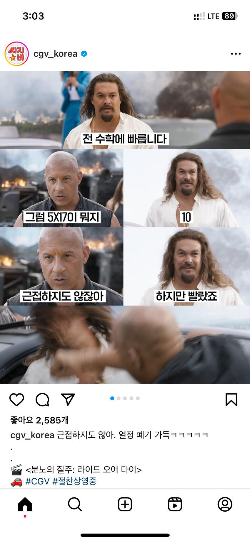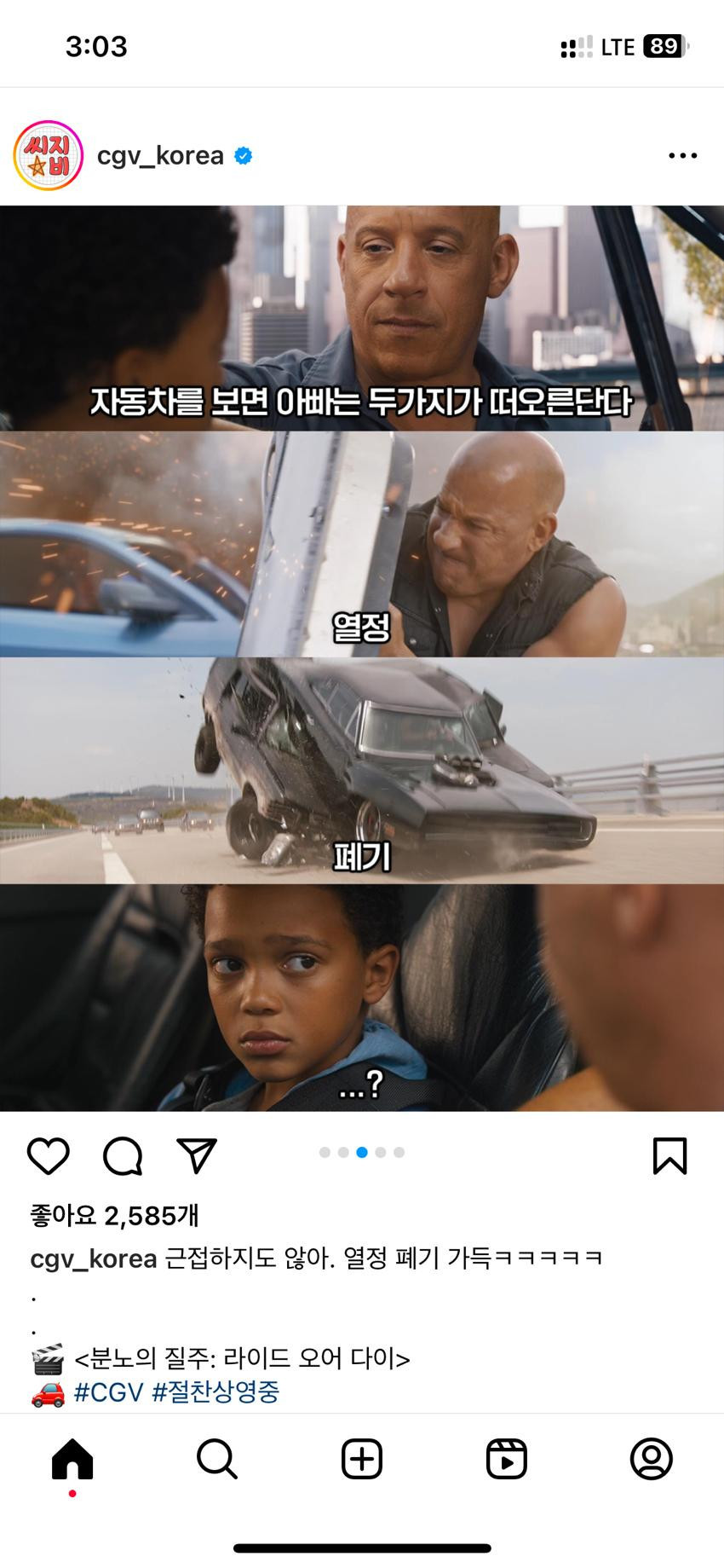 공식 CGV 분노의 질주 홍보 인스타