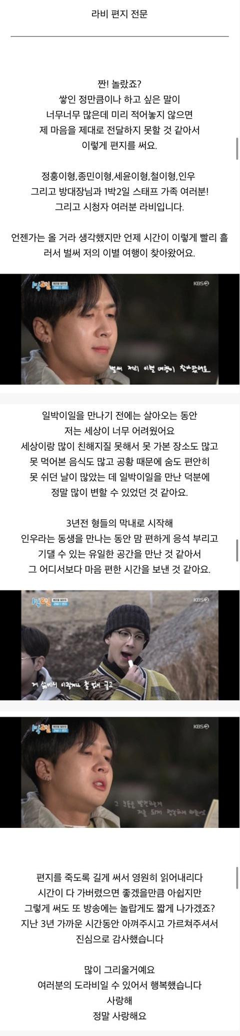 군대때문에 1박2일 하차 한다고 편지썼던 라비