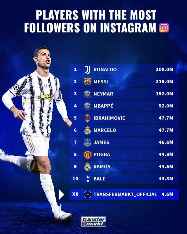 전세계 축구 선수 인스타그램 팔로워 숫자 순위