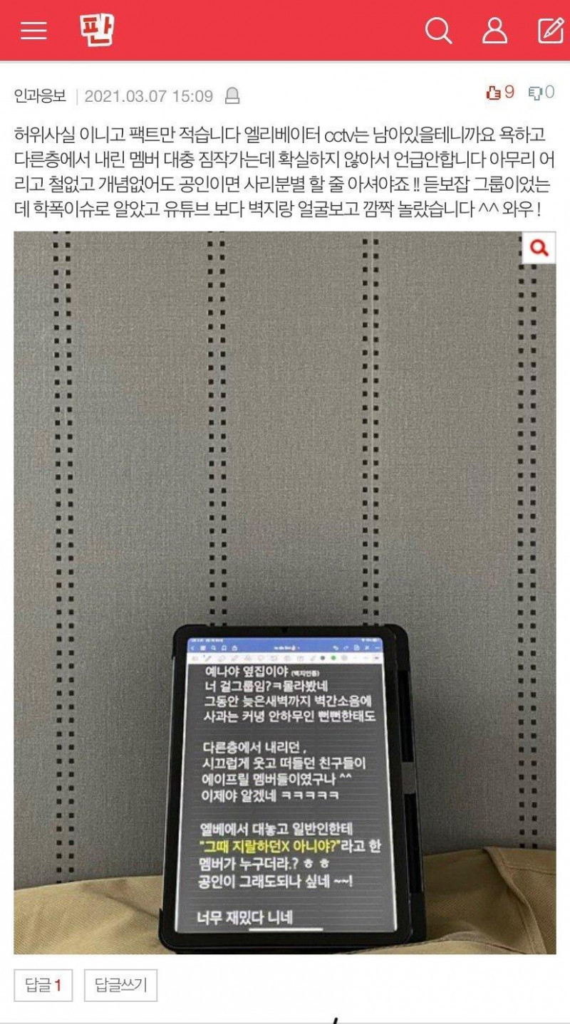 벽지인증짤예나랑 나은이랑 같은 건물사는것도 일치얘들은 파도파도 괴담뿐