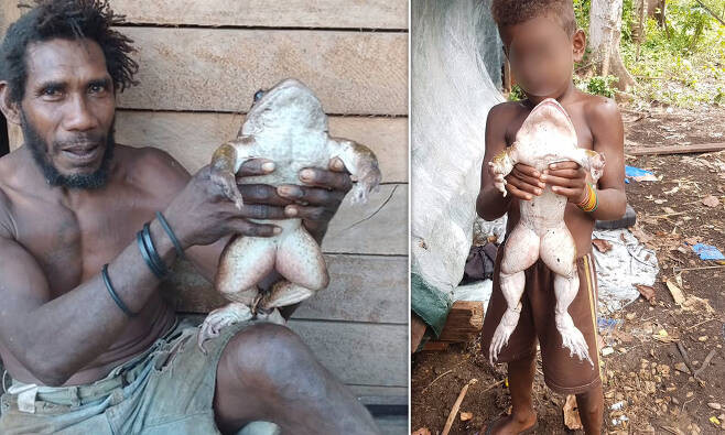 영국 일간 데일리메일 등 외신 보도에 따르면, 거대 개구리는 지난달 솔로몬 제도의 한 마을 인근 수풀에서 잡혔다.