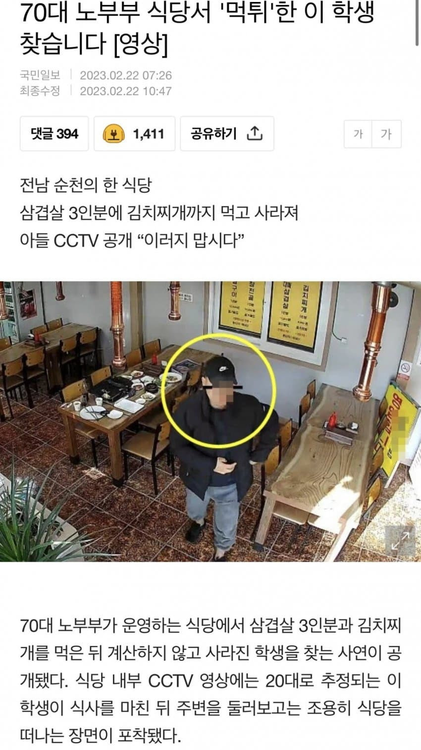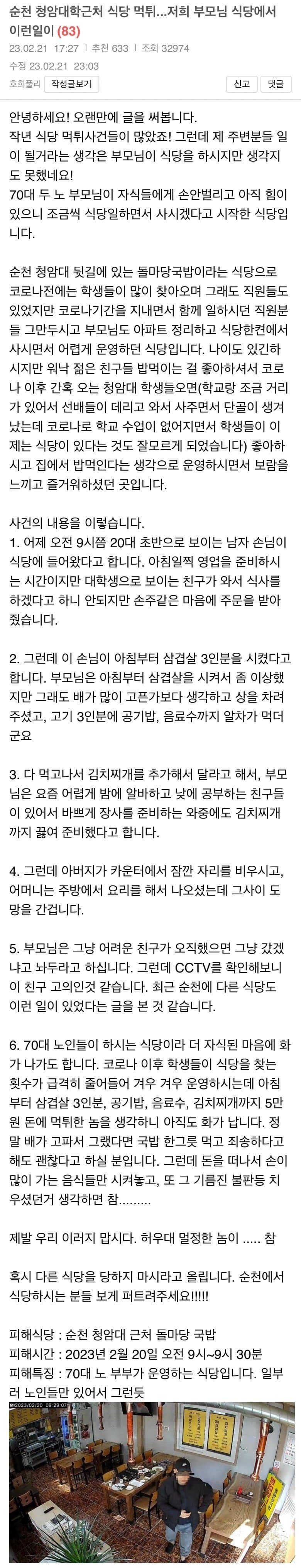 순천 노부부 식당 먹튀 사건 범인 찾는 중 ㄷㄷ
