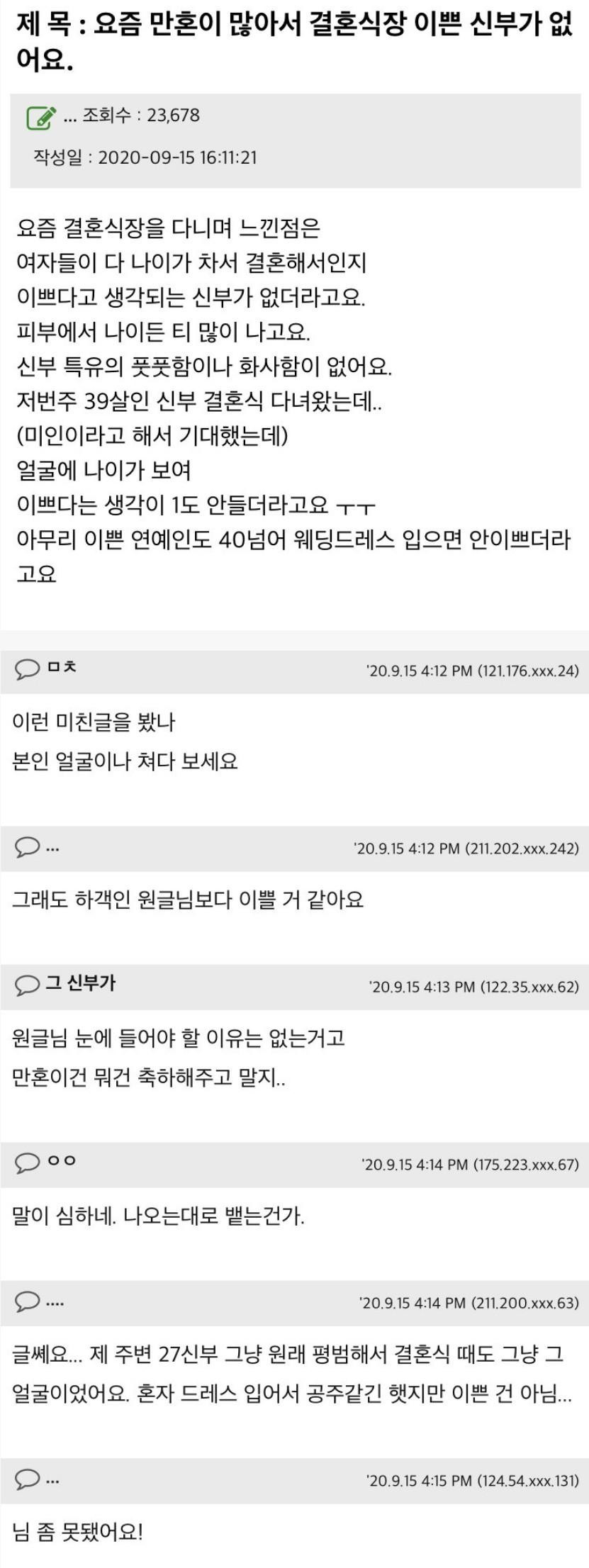 결혼식장에 이쁜 신부가 없어요