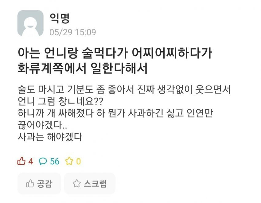 언니한테 창ㄴ라고 했다가 분위기 싸해진 에타녀