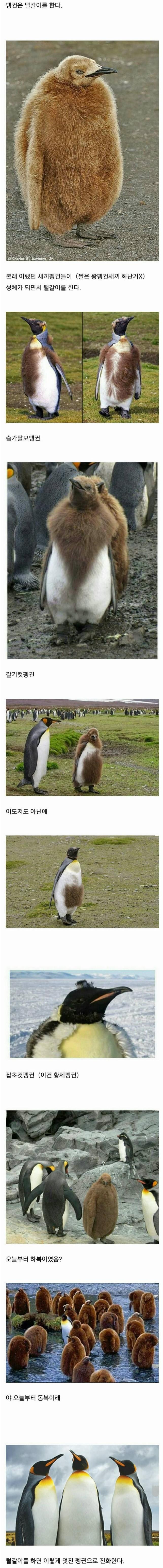 새끼 펭귄들의 털갈이 대참사