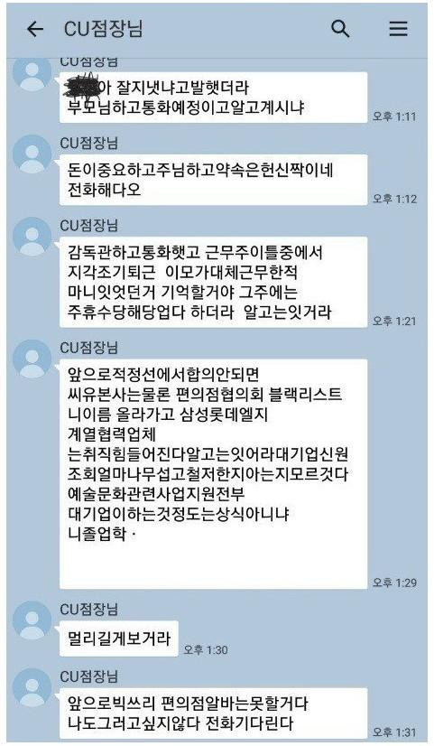 최저시급 안준 점장 노동청 고발당한후 카톡