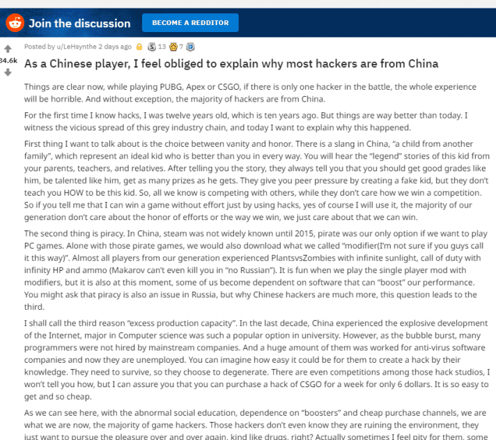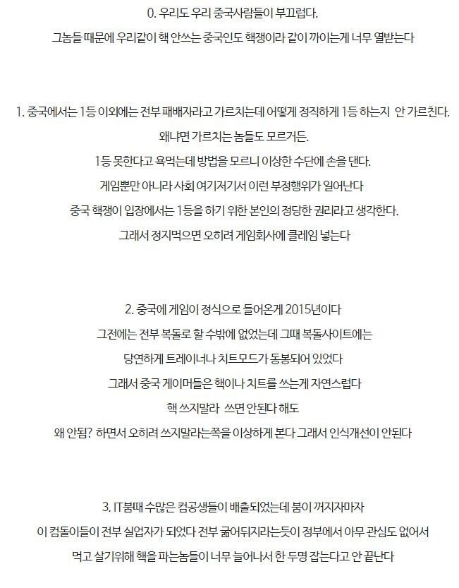 중국인이 게임에서 핵을 많이 쓰는 이유