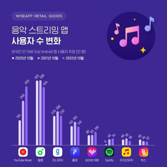 올해 이용자수 급상승중이던 유튜브 뮤직이 멜론 이용자수를 결국 넘음