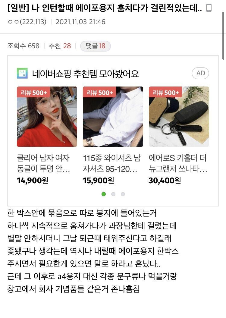 회사에서 A4용지 빼돌리다 걸린 공갤러