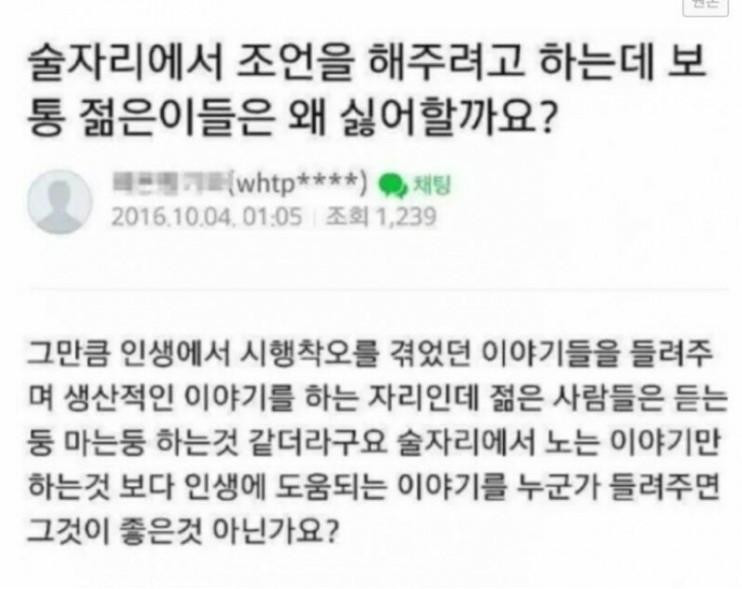 술자리에서 조언을 해주려고 하는데 왜 싫어할까요?