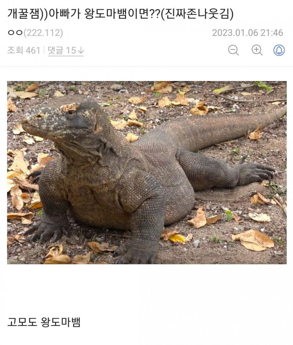싱글벙글 아빠가 왕도마뱀이면???(진짜존나웃김)