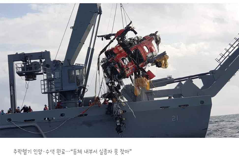 오늘(3일) 오후 2시쯤 독도 인근 해상에서 추락한 소방헬기 동체의 인양과 수색이 완료됐습니다.