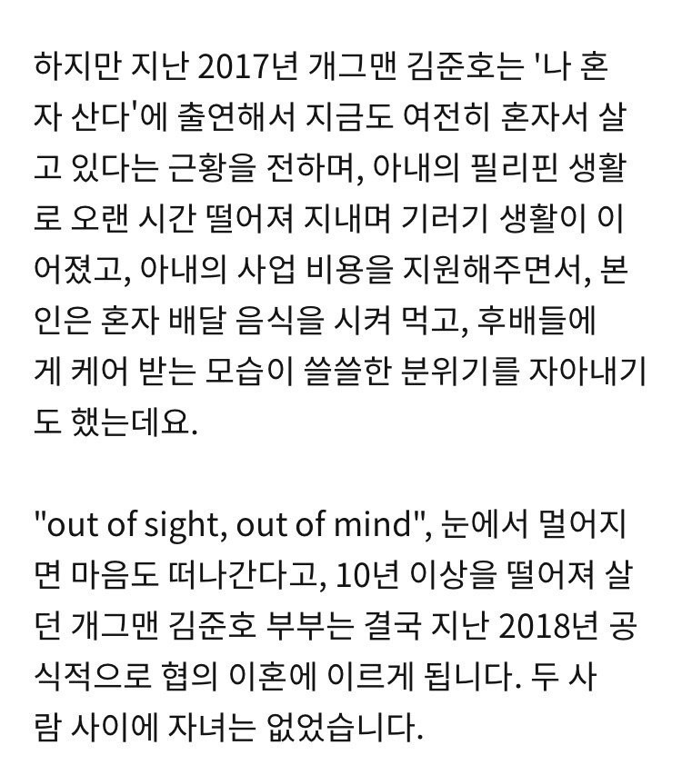 결혼 생활 12년 중 11년을 혼자 살다 이혼한 개그맨