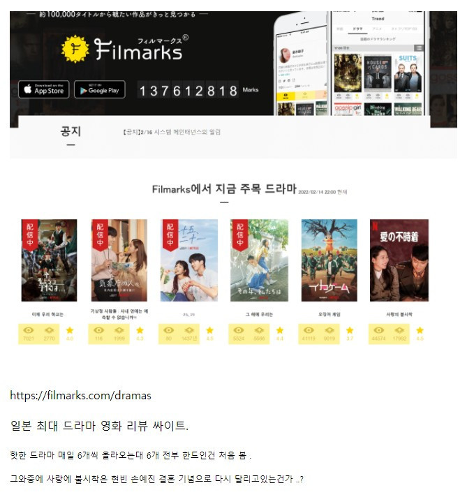 일본 최대 드라마 리뷰 사이트 근황
