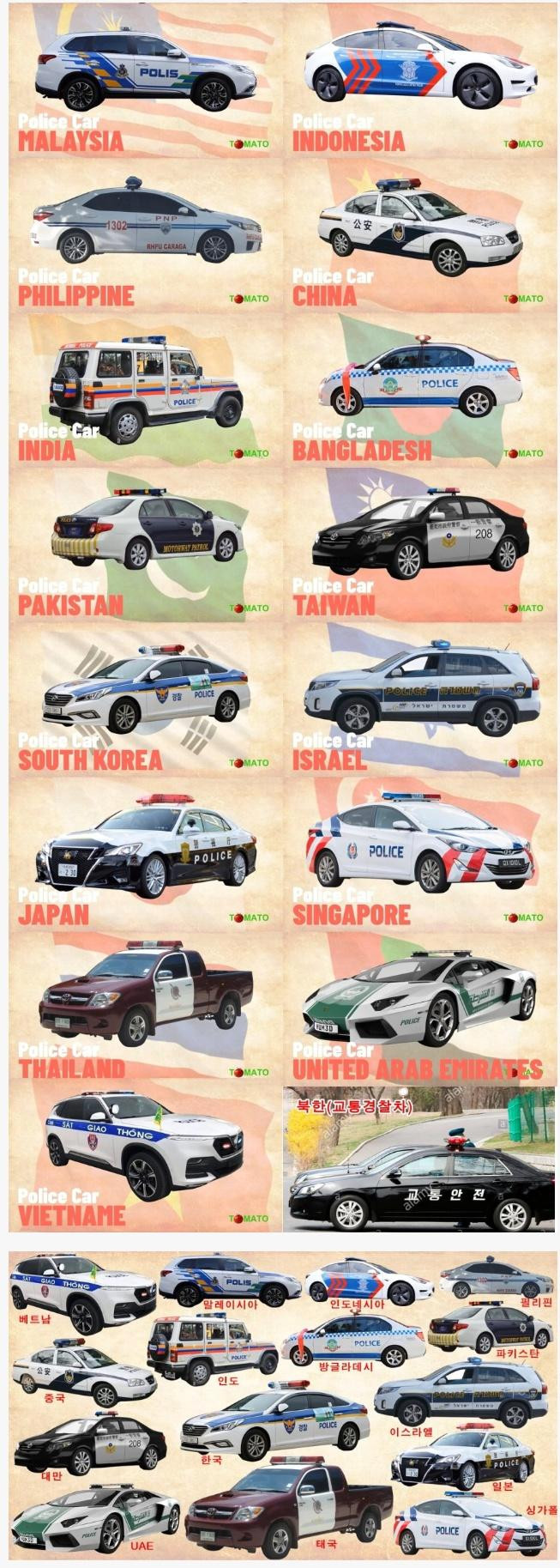 아시아 국가별 경찰차 모습