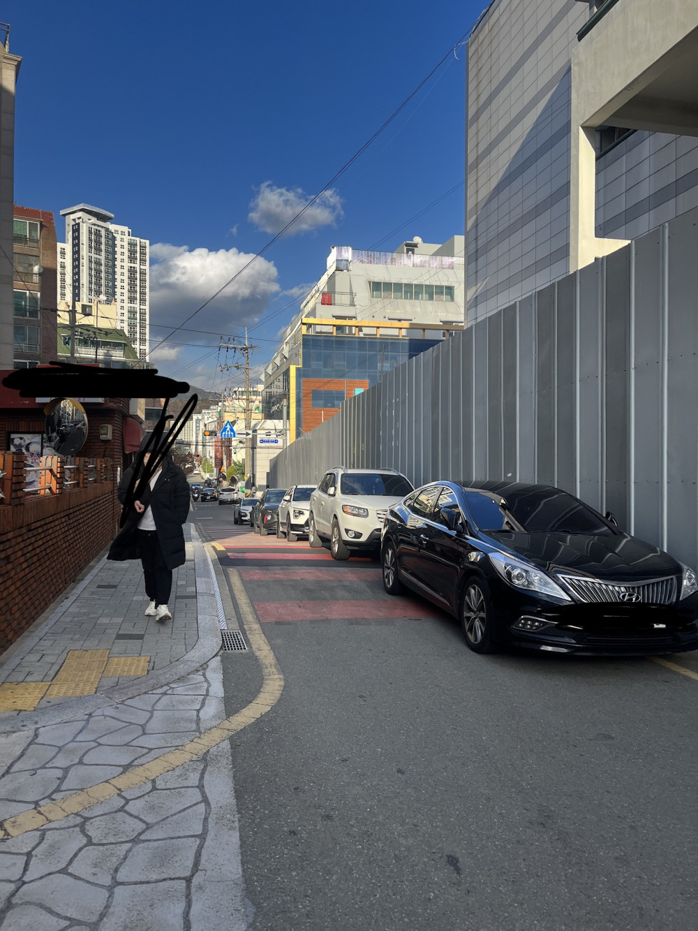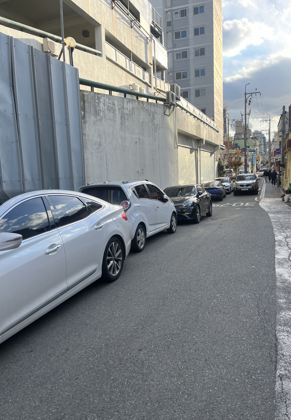 사진 보면 알겠지만 인도랑 도로 사이가 좁은대도 불구하고 꾸역꾸역 불법주차.