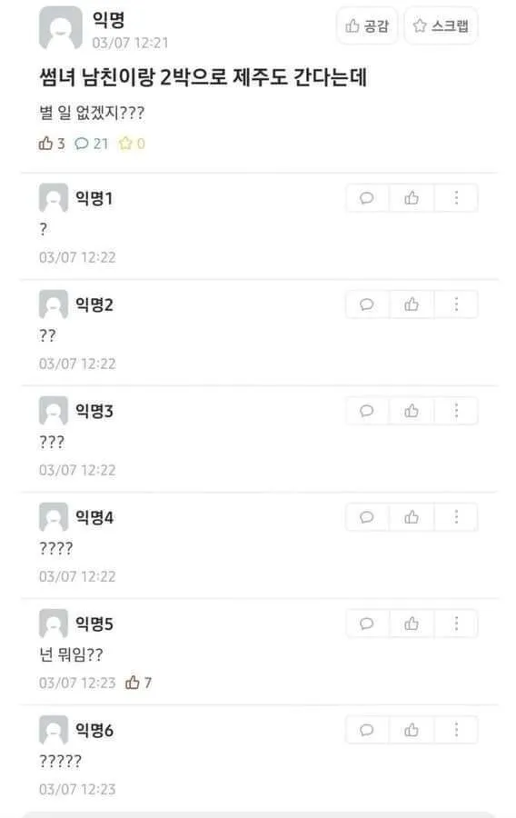 썸녀가 남친이랑 2박으로 제주도 간다는데