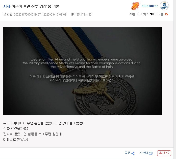 이근 우크라이나 훈장에 대한 엠팍 반응.jpg