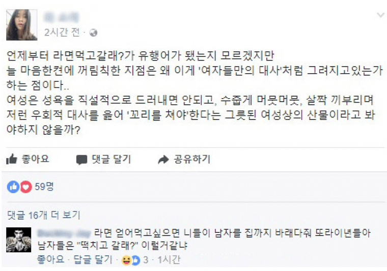 "라면 먹고 갈래?" 는 남녀 차별