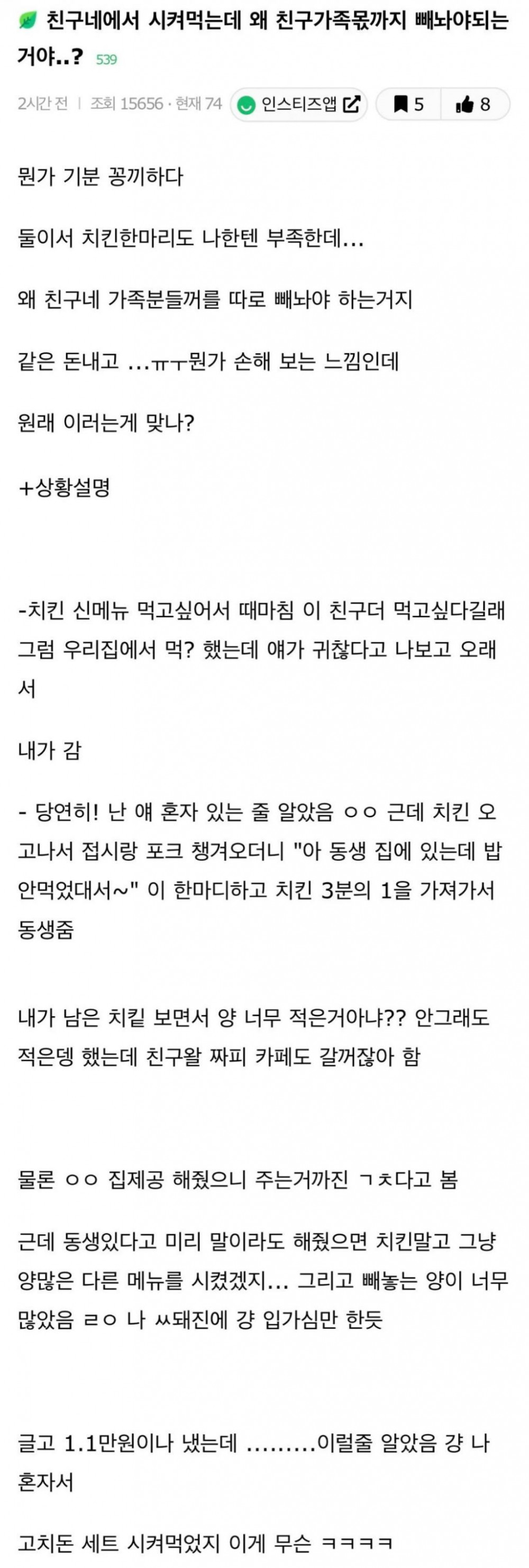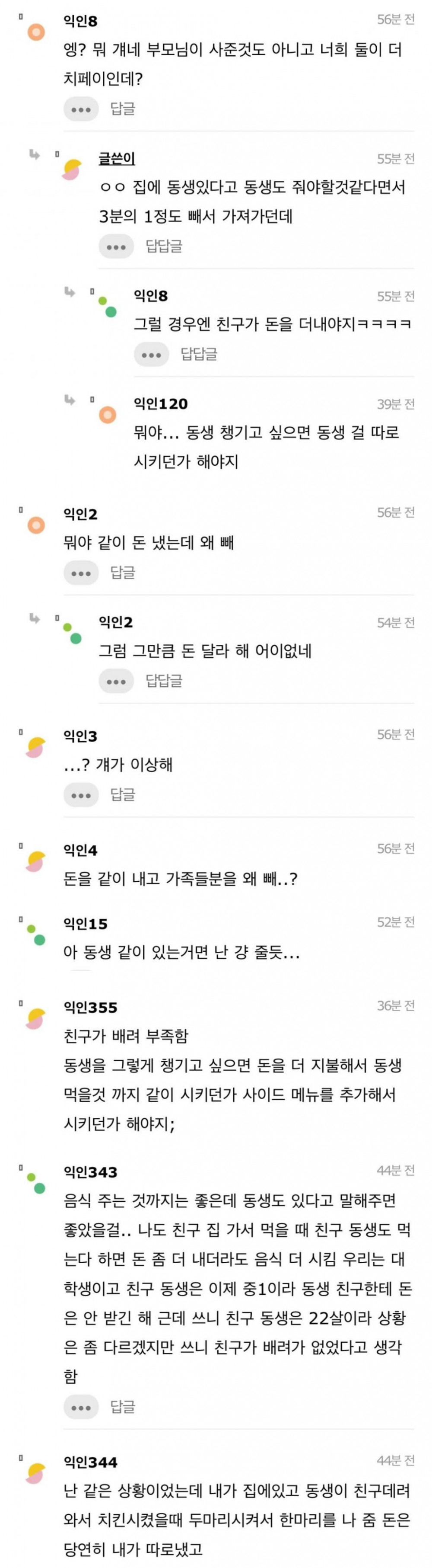 친구네에서 시켜먹는데 친구 가족몫까지 빼놔야되는거야?