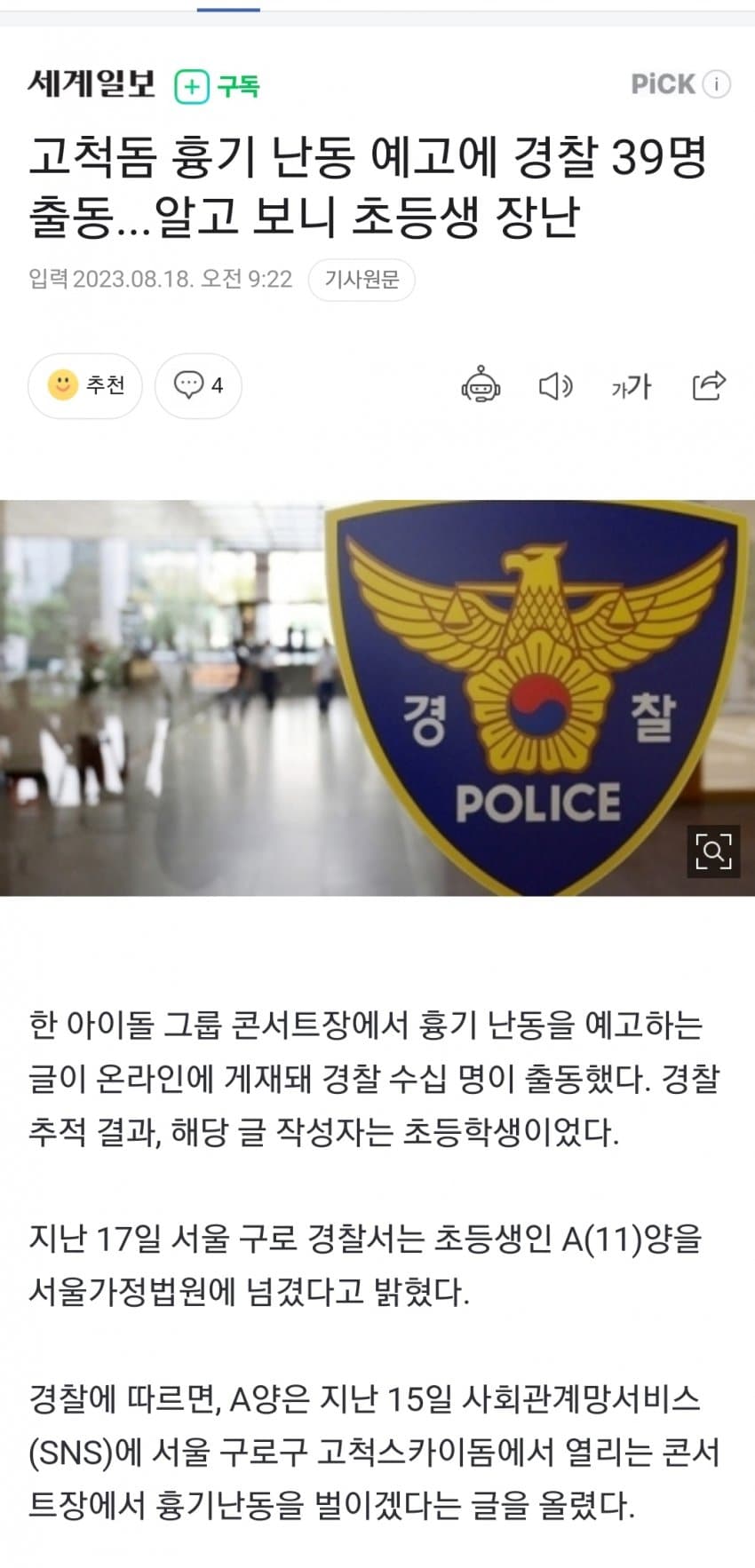 - 고척돔 흉기난동 예고.. 범인은 11세 여자 초등생