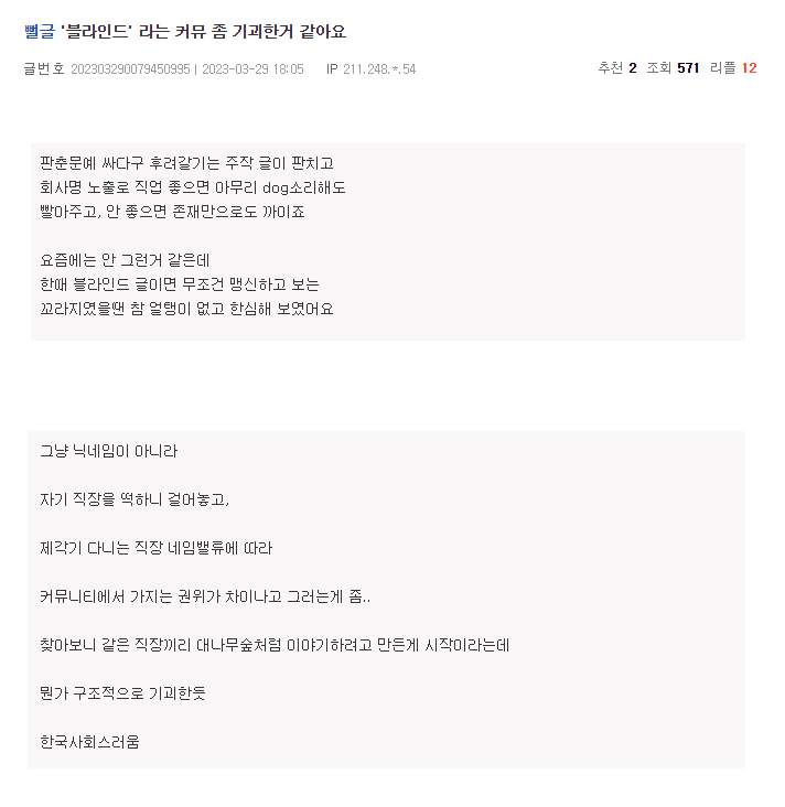 악명커뮤임에도 직장이름이 가져다 주는 권위가 대단하긴 한 것 같음
