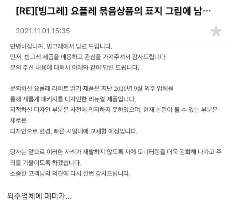 요플레 페미 손모양 1:1 문의 답변