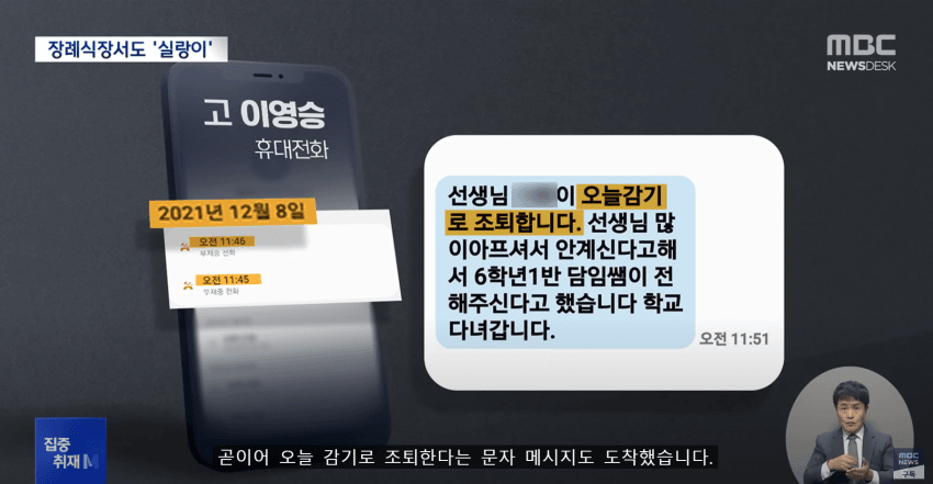 그래서 장례식장으로 뛰쳐가서 진짜 맞다는 걸 확인한 학부모. 조문은 했을까?