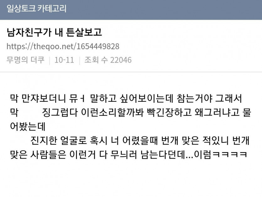 남자 친구가 내 튼살 보고 하는 말이