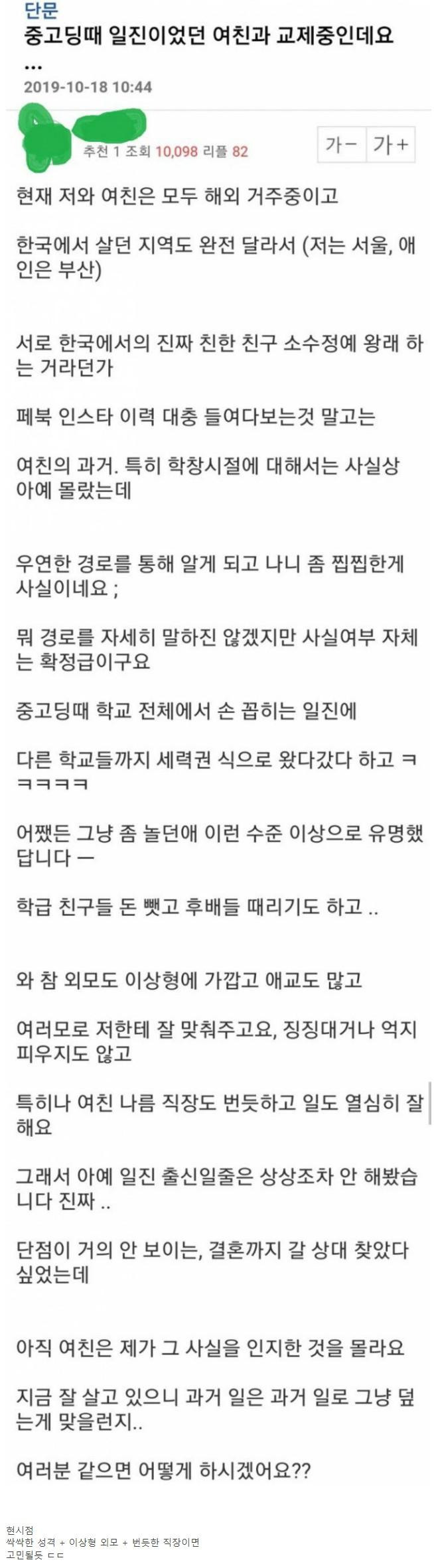 급식시절 지역구급 일진이었던 여자친구