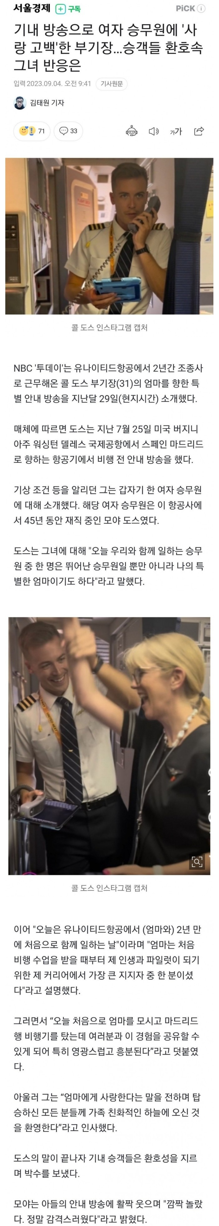 기내 방송으로 여승무원에게 고백한 부기장