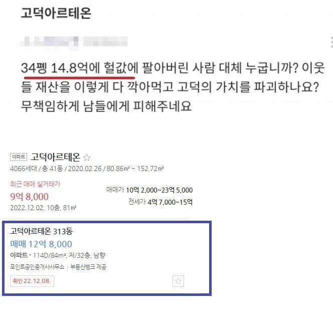 34평 14.8억에 팔아서 아파트의 가치를 파괴한 자의 최후