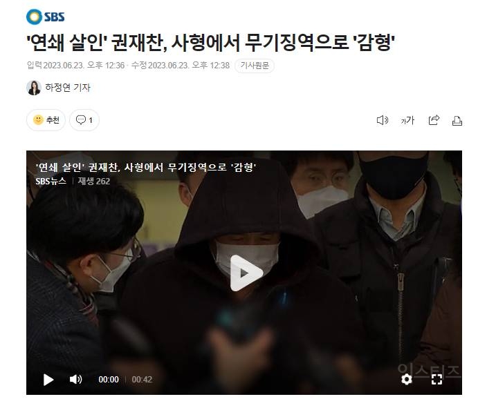 출처 : '연쇄 살인' 권재찬, 사형에서 무기징역으로 '감형' (naver.com)