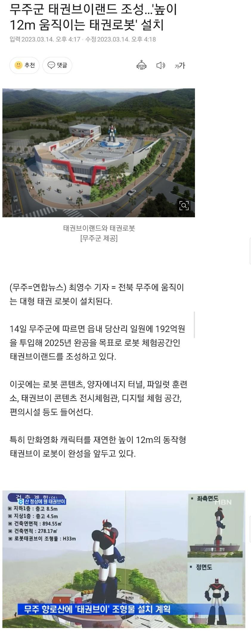무려 192억원 들여 태권브이랜드 만들고 있는 전북무주군