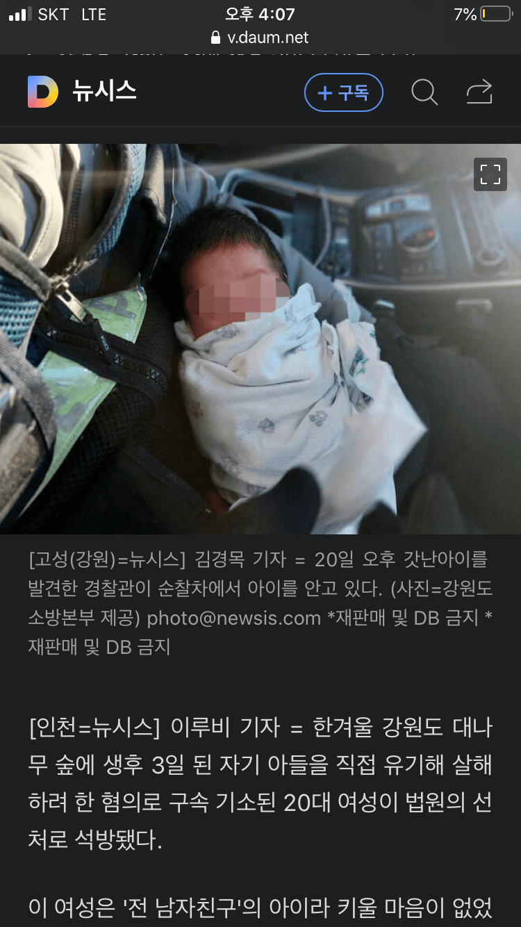 한겨울에 신생아 얼어죽으라고 길바닥에 버림