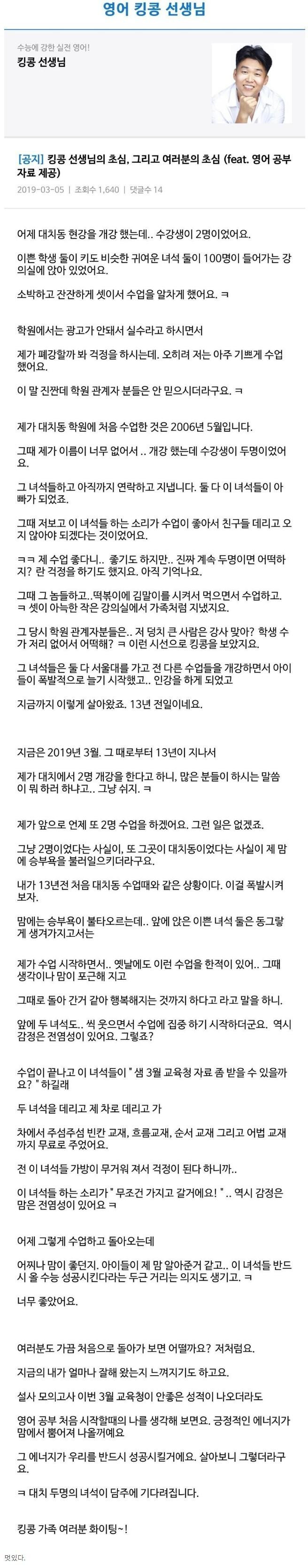 어느 수강생 2명인 학원강사
