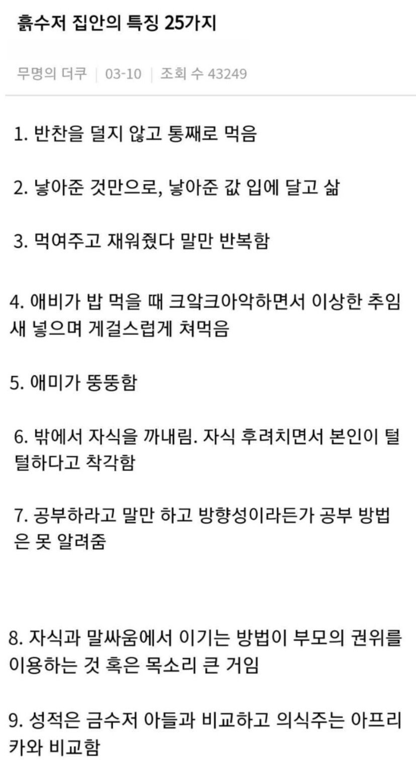 여초에서 말하는 흙수저 집안 특징