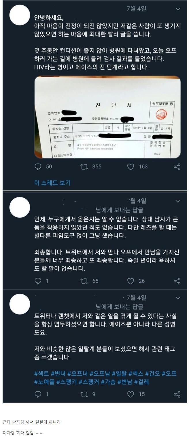 무분별하게 ㅅㅅ하다 에이즈 걸린 20대녀