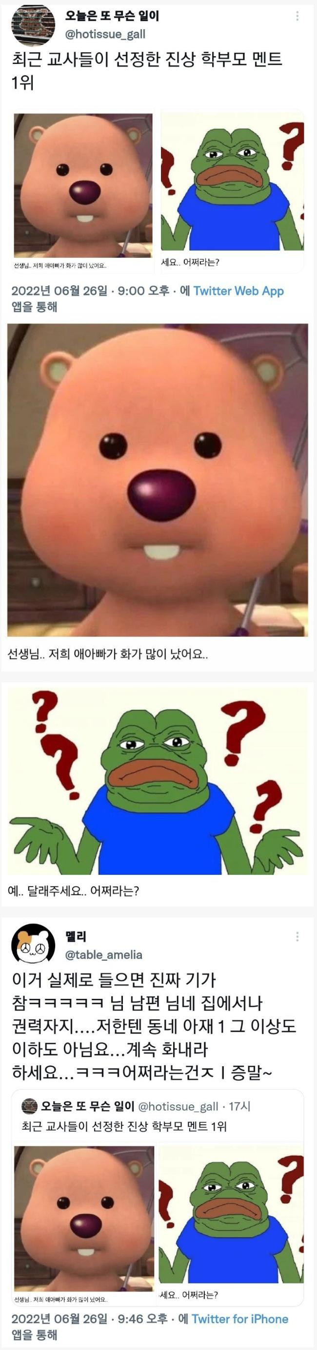 최근 교사들이 선정한 진상 학부모 멘트 1위
