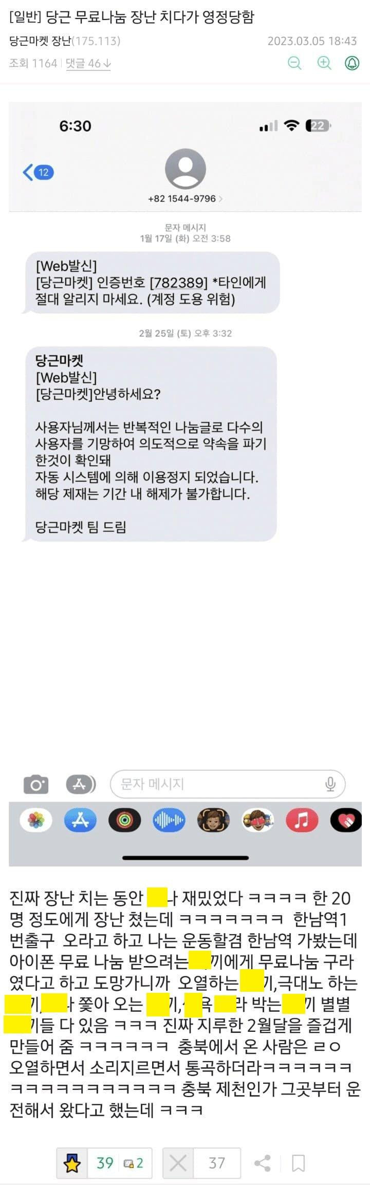 어질어질한 당근마켓 무료나눔 영정 사유