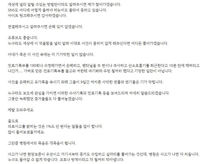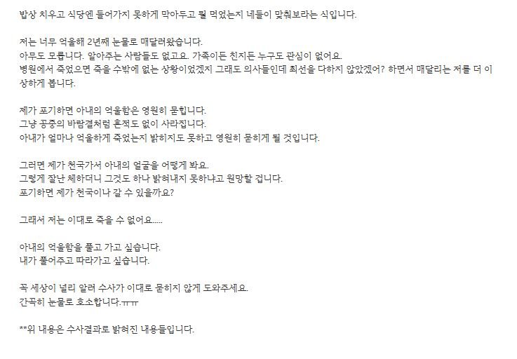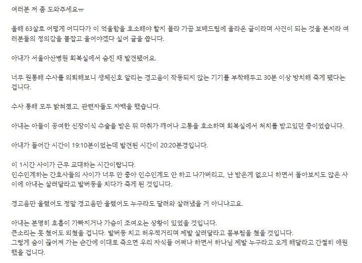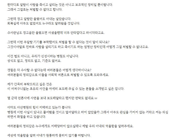 3.경고음이 안 울려서 인수인계 1시간 동안 아내 분이 사망하셨음. (수사결과 확인)