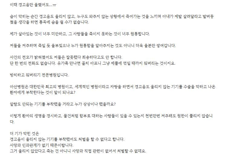 4. 경고음과 죽음의 인과관계를 밝히기 어려움으로 병원은 입꾹닫