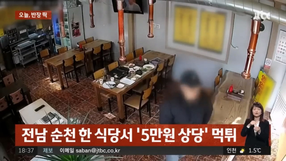 70대 노부부가 운영하는 식당에서 한남성이 5만원 어치 음식먹고 먹튀함