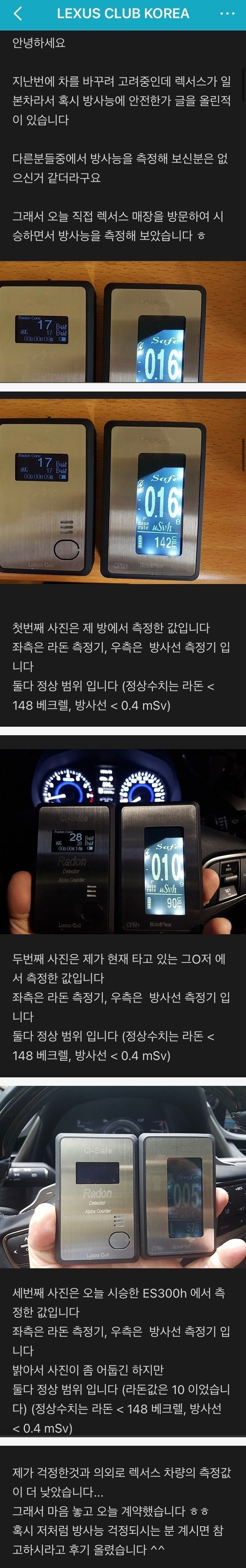 일본차 렉서스 방사능 측정 결과