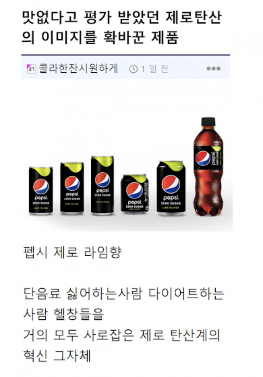 제로 음료는 맛없다는 이미지를 확 깨버린 음료