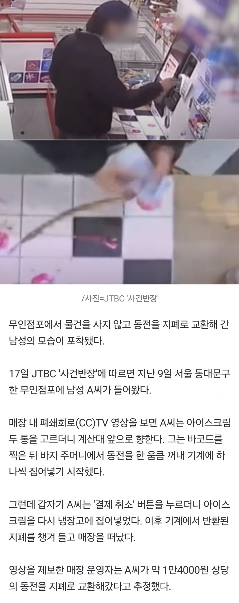 무인 매장서 동전 1만4천원 지폐로 바꾼 남성