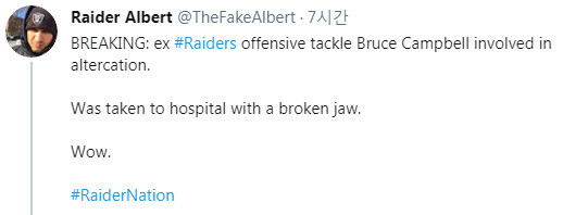 198cm에 130kg 나가는 NFL 선수 브루스 캠벨이 월마트에서 일반인과 싸우다 턱이 박살나 병원으로 실려감