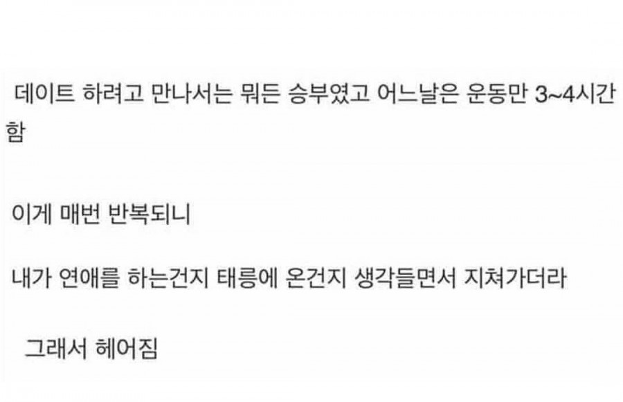 체대생 여자친구와 헤어진 이유